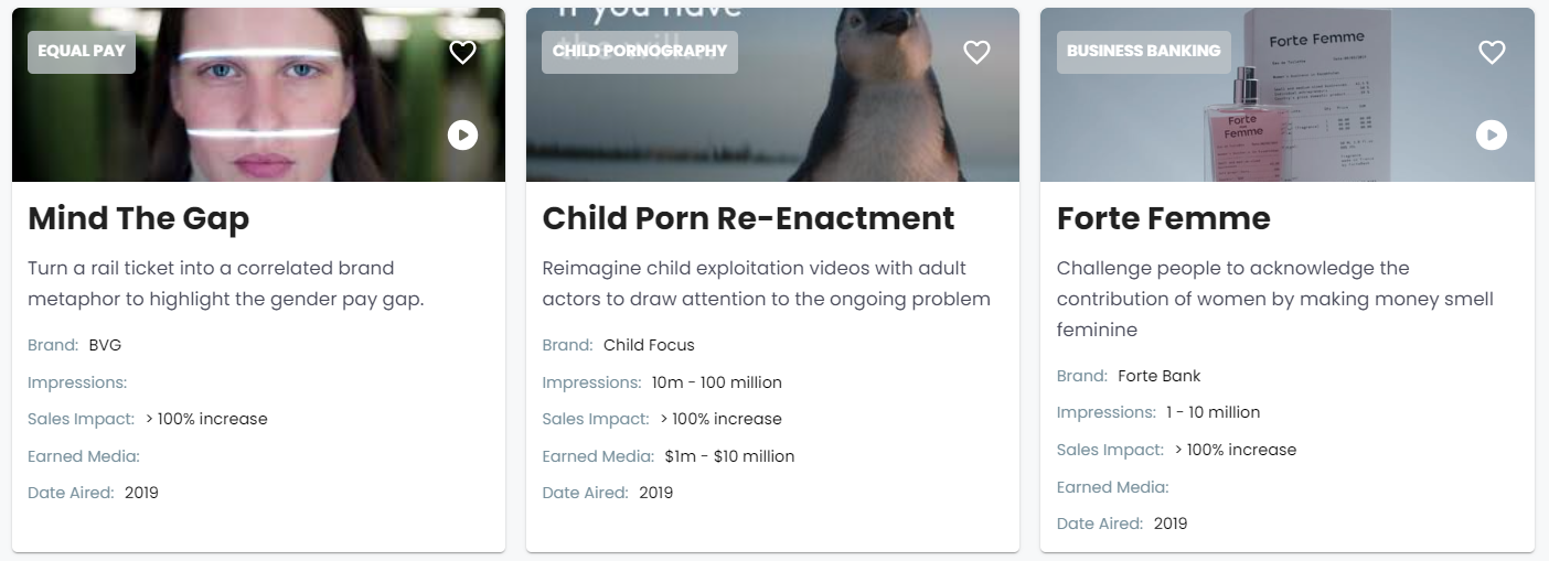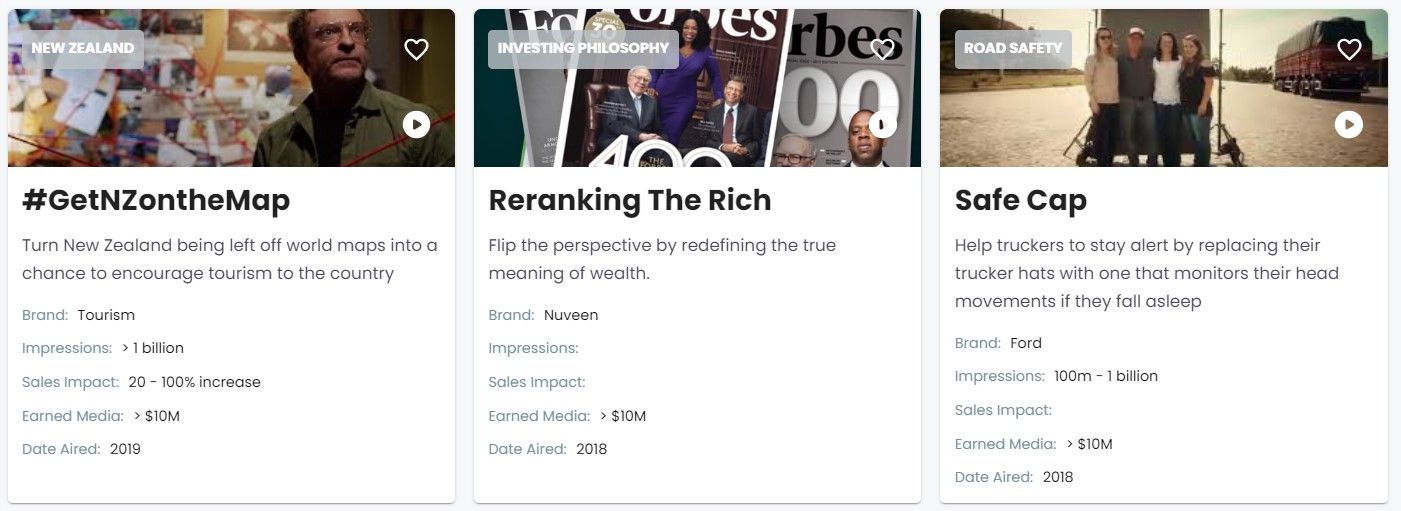 In this collection, there are over 20 campaigns that achieved over $1M in earned media, such as the below: