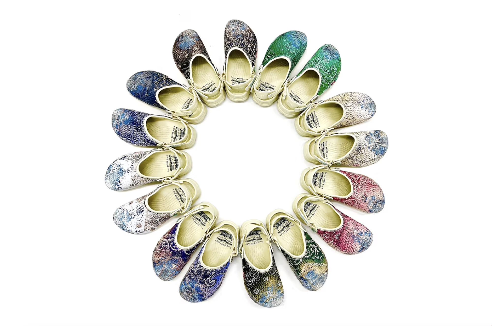 PROT, the creative force behind the Japanese brand PROLETA RE ART, has a reputation for repurposing diverse leftover fabrics, incorporating unique tapestries and textures to bring new dimensions to conventional items. In the design label's latest endeavor, PROT has teamed up with Levi’s and Crocs to craft an exclusive seriously funky collection of shoes and shoe bags, making use of surplus denim materials accumulated at Levi's headquarters over time.