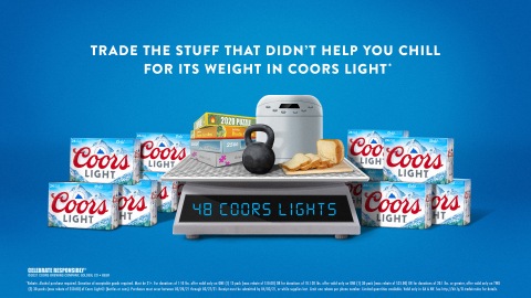 Correlate <a mutual benefit> with <a brand benefit>. Throughout the global pandemic, Americans looked for opportunities to fight boredom and keep occupied while at home. Purchases for kitchen gadgets and exercise equipment skyrocketed in 2020, but a year later, many of the items were sitting in the corner collecting dust. So, Coors Light decided to help folks remove the anxiety-inducing clutter and bring some “chill” back to their homes with the Clutter for Coors trade-in campaign. The campaign invited people to purge their unwanted purchases and trade the items in for their weight in Coors Light beer.