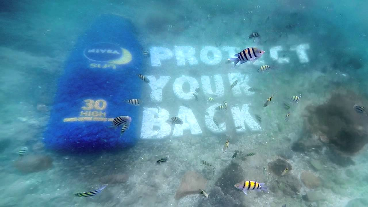 Create a billboard underwater from natural materials to promote the need to wear suncream, especially while snorkeling!