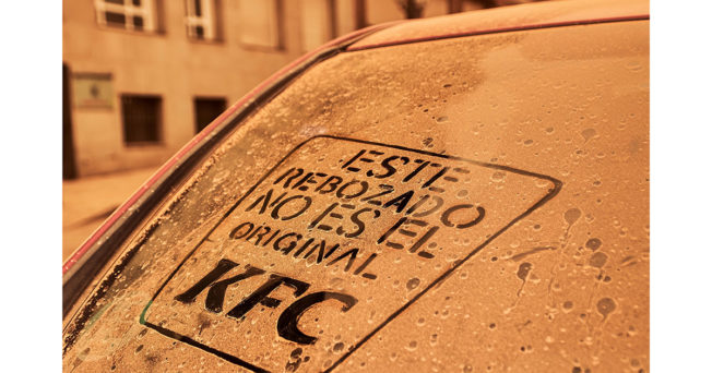 Give Spaniards the chance to earn some Free KFC if they write the KFC logo on cars covered in ‘breaded’ dust from a storm.