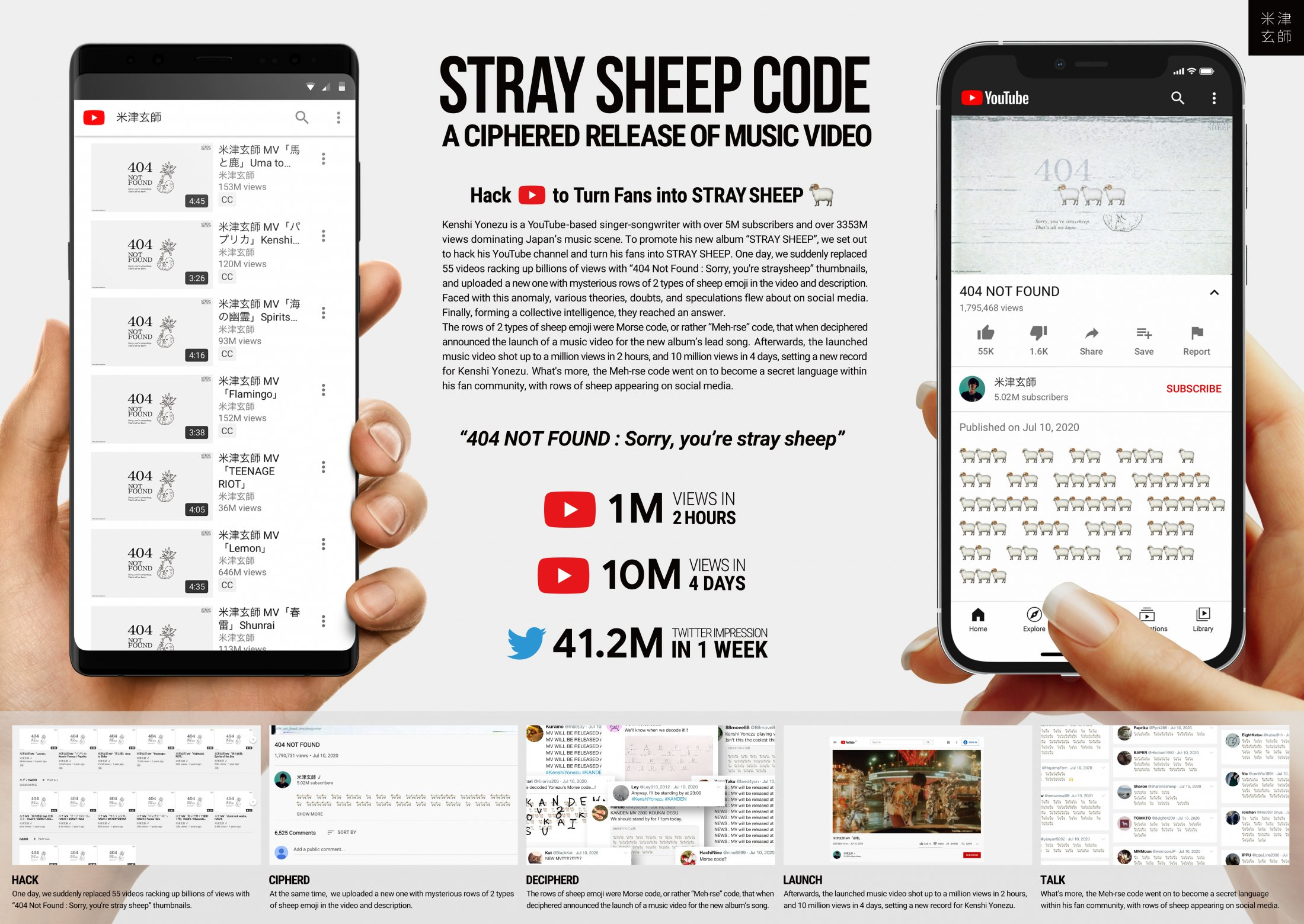 With the pandemic making it difficult for musicians to interact with their fans, Sony came up with a baa-rilliant way to keep Kenshi Yonezu’s fans excited about the release of his new album ‘STRAY SHEEP.’ Knowing that his fanbase interacted mostly on YouTube, this was the obvious place to cause disruption. By ‘hacking’ his YouTube channel and replacing 55 of his music videos with 404 error messages and sheep emojis, his fans were soon flocking to understand the hidden messages, claiming it quickly as ‘meh-rse’ code. (sheep ‘meh’ in Japan) His fans deciphered the code and a new song was released. The stunt saw the new release gain over a million views in two hours, 10 million views in four days – a record for Yonezu.