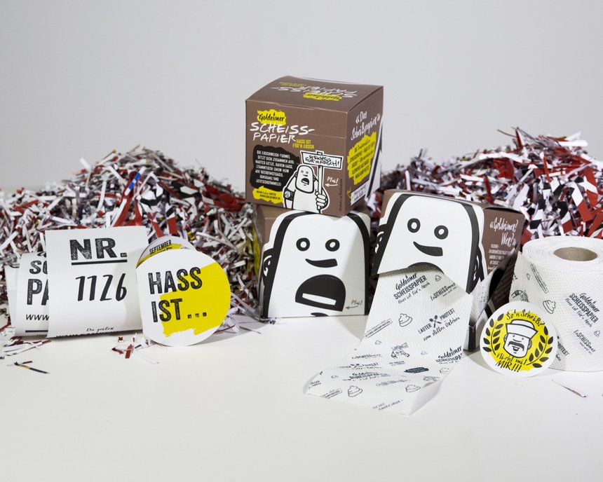 To combat hate propaganda from right-wing populists during the German federal election, Goldeimer, a toilet paper producer, launched a campaign seeking assistance to collect and recycle harmful material. Through collection events across various German cities, the hate propaganda was shredded and transformed into toilet paper. The resulting product, named "Shitty Paper - Made from hate," quickly sold out, with the profits donated to CURA, an organization supporting victims of right-wing violence in Germany. Despite starting with no funds, the initiative garnered a media value exceeding 1.6 million euros and reached over 10 million people within a remarkable four-month period.